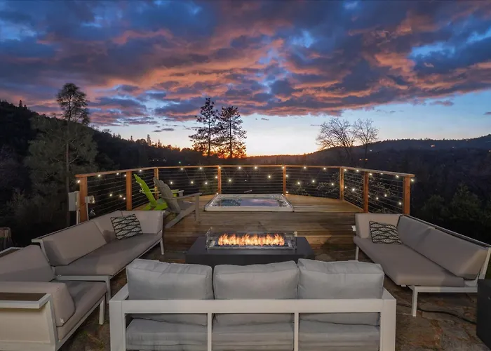 The 2-bedroom New Yosemite Dream Nest With Huge Views/Spa/Firepit/Pet Friendly Oakhurst villa offers proximity to nearby tourist spots, such as Children's Educational Museum of Sierra, situated around 10 minutes' drive away.